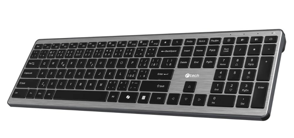 C-TECH Klávesnice Quallis KB-118 Dual mode, bezdrátová, BT5.0 + 2,4GHz, scissors tlačítka, USB nano receiver, CZ/SK