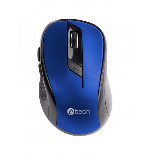 C-TECH myš WLM-02, černo-modrá, bezdrátová, 1600DPI, 6 tlačítek, USB nano receiver
