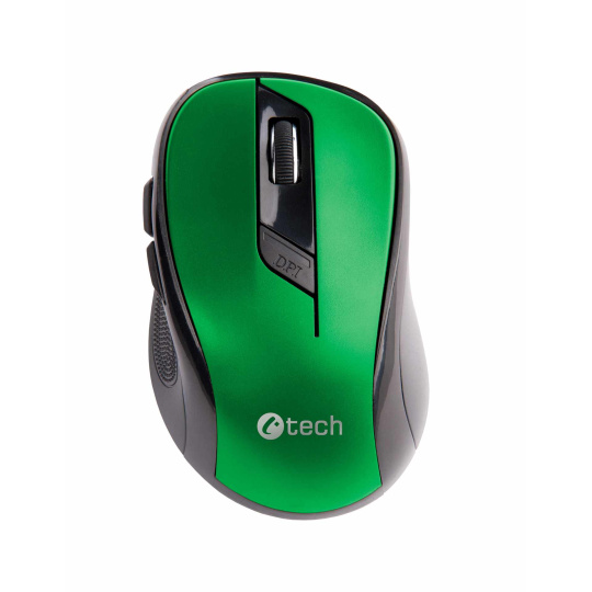 C-TECH myš WLM-02, černo-zelená, bezdrátová, 1600DPI, 6 tlačítek, USB nano receiver