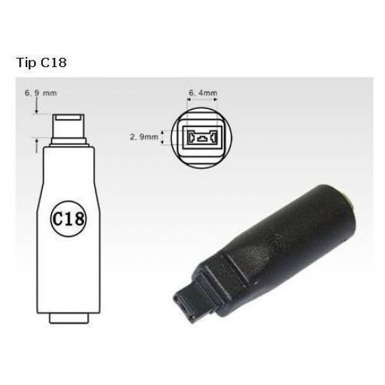 Konektor, kterým lze redukovat konektor C.4 univerzálního síťového adaptéru na konektor C18 (6,54mm x 3,2mm) vhodné pro notebooky Dell