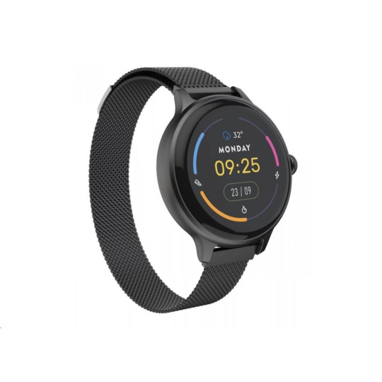 Luxusní fitness hodinky CARNEO HERO mini HR+ s Milánským, kovovým řemínkem s barevným Super HD AMOLED displejem. Monitorují vaši denní aktivitu, výšku stresu a lze je spárovat s mobilním telefonem, díky čemuž Vás upozorní na příchozí hovor či SMS. Jejich dokonalé, minimalistické kovové tělo s jednoduchými křivkami je tak návykové, že je nebudete chtít po prvním nošení sundat z ruky. Hodinky Vám umožňují vyřídit telefonický hovor přes zabudovaný mikrofon a reproduktor, pokud budete v dosahu spárovaného telefonu (vzdálenost až 10 metrů).