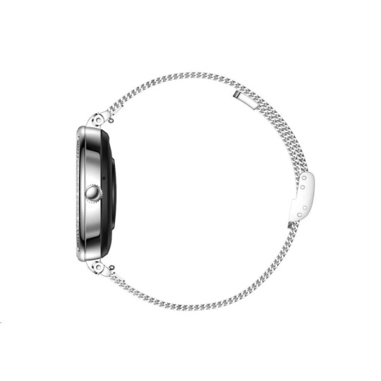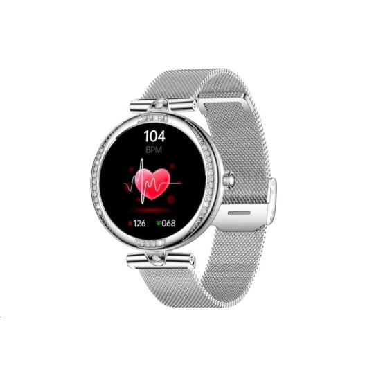 Luxusní dámské fitness hodinky CARNEO Seinna HR+ stříbrné jsou skutečný klenot na ruce každé ženy. Kovové tělo osazené broušenými kameny přitáhne pohledy všech. S barevným SUPER AMOLED displejem monitorují vaši denní aktivitu a lze je spárovat s mobilním telefonem, díky čemuž můžete vyřídit telefonický hovor přímo ze zápěstí, nebo vás upozorní na příchozí hovor, SMS nebo zprávu z aplikací.