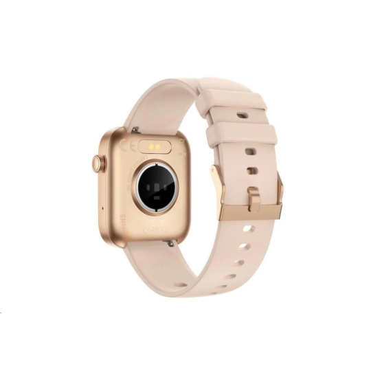 Moderní fitness hodinky Carneo Zenith HR+ v elegantní zlaté barvě jsou vybaveny barevným displejem IPS, který lze aktivovat pouhým otočením ruky. Měří tělesnou teplotu, krevní tlak, okysličení krve, srdeční tep, ušlou vzdálenost, monitorují spálené kalorie a kvalitu spánku. Jejich součástí je baterie s výdrží cca 2-4 dny. Podle certifikace IP67 jsou odolné vůči vodě a prachu. Hodinky s podporou technologie Bluetooth jsou kompatibilní s operačním systémem iOS a Android. Silikonový náramek s kovovou přezkou je příjemný na dotek a zaručuje komfort během celého dne.
