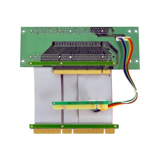 | The Riser card has one PCI-E 16x slot and two 3,3V 64-bit PCI-X slots, PCI-X extension cable, PCI signal cable
