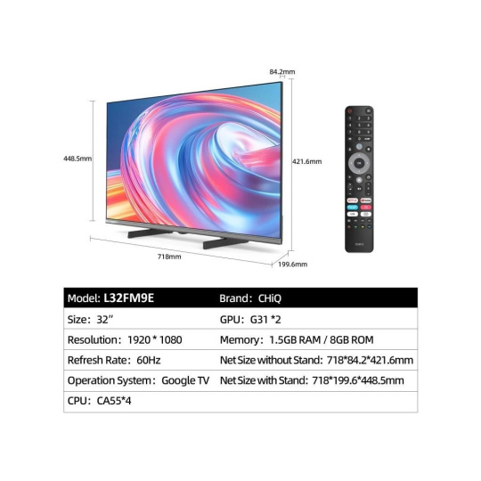 CHiQ L32FM9E TV 32", FHD, LED, metalická bezrámečková, Smart, Google TV, HDR, Chromecast