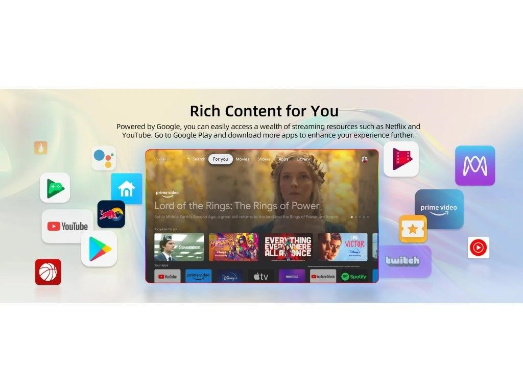| Aplikace | YouTube, Netflix, Prime Video, Google Play, O2 TV |