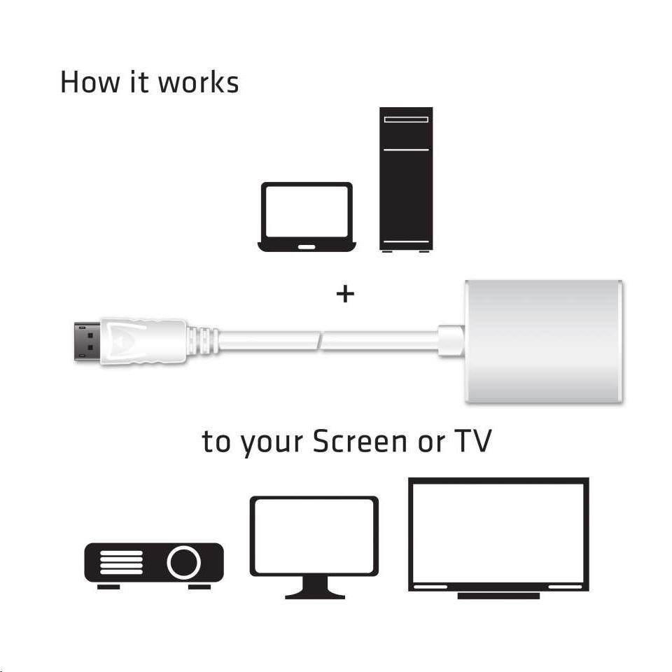Adaptér je plně plug and play, takže není potřeba instalovat ovladače a je napájen z výstupu DisplayPort ™.