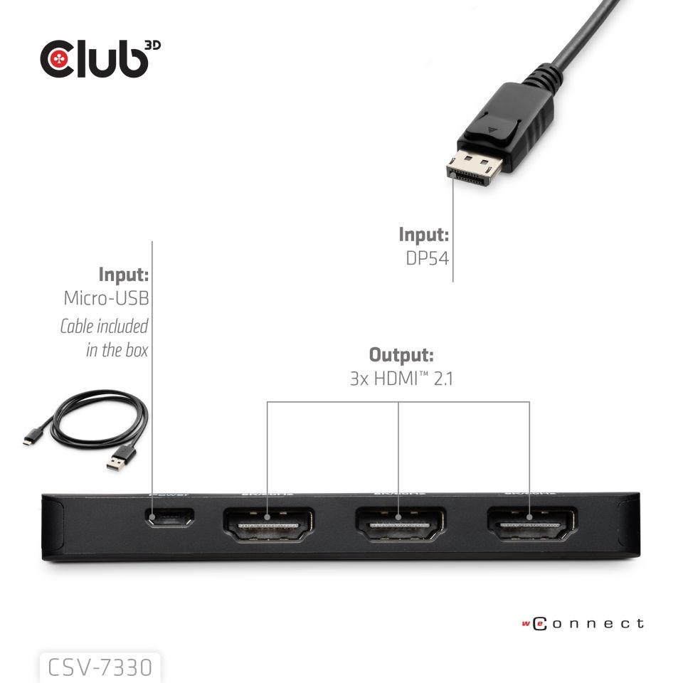 Club3D hub MST (Multi Stream Transport) DisplayPort 1.4 na 3x HDMI 8K60Hz (M/F)