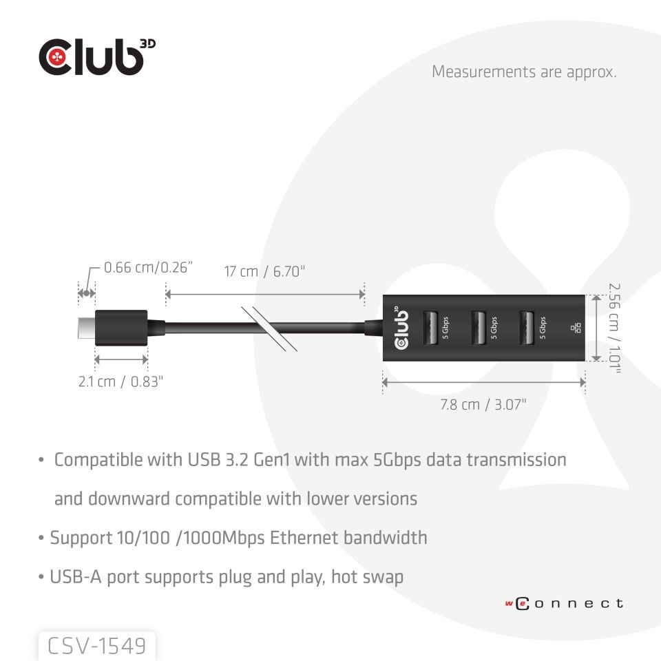 Club3D Dokovací stanice USB-C na 3xUSB + RJ45