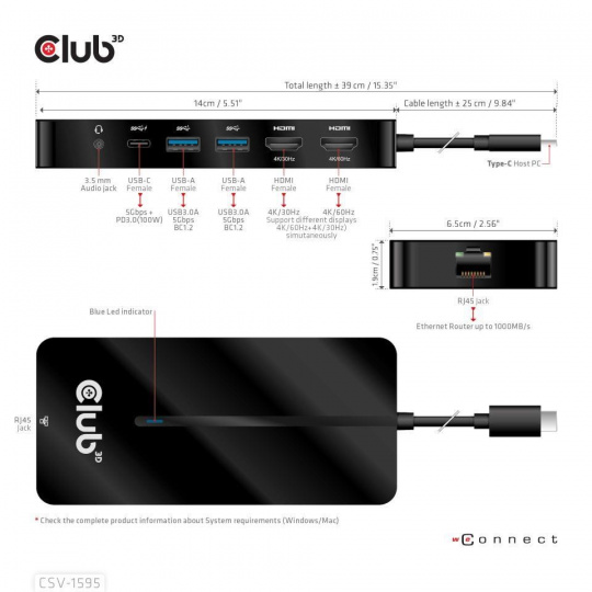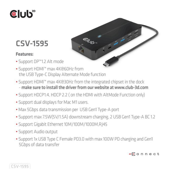 • Support HDMI™ max 4K@30Hz from the integrated chipset in the dock - make sure to install the driver from our website at www.club-3d.com
