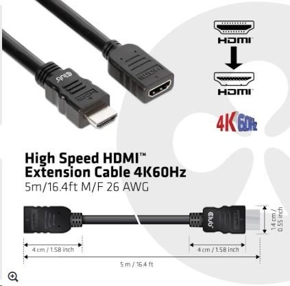 Club3D Kabel prodlužovací Rychlý HDMI 4K60HZ (M/F), 5m, černá, 26 AWG