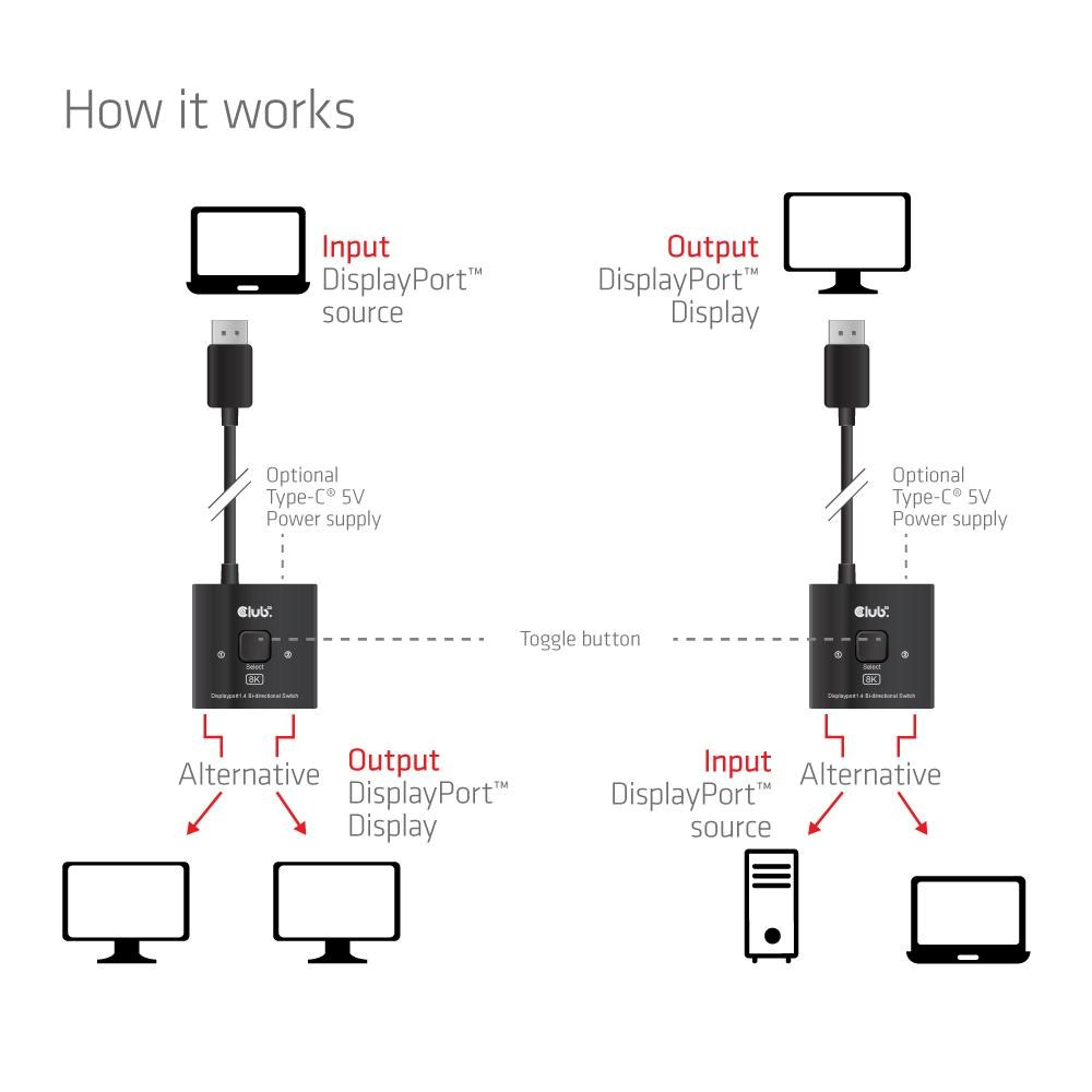 Club3D Switch, DP na 2x DP Oboustranný 2v1, 8K60Hz, 0,5m