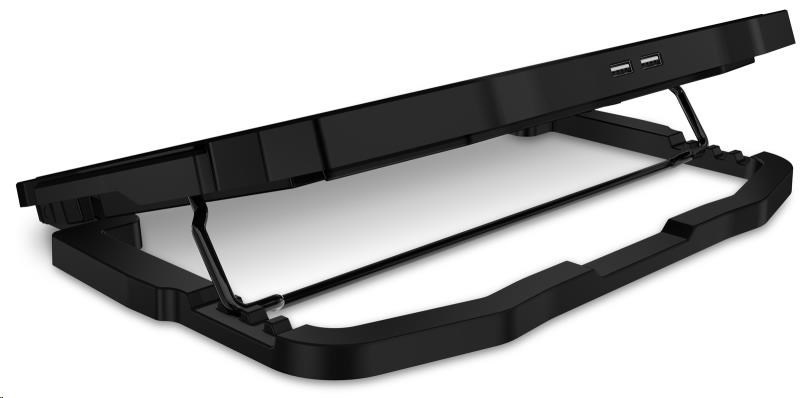 Podložka zajišťuje jak odvod tepla z notebooku a jeho ventilačních otvorů, tak i přímé ochlazování pláště notebooku díky cirkulaci chladného vzduchu a celkově tak zvyšuje výkon notebooku. Je plně kompatibilní s notebooky až do velikosti 15,6" a díky kompaktním rozměrům je předurčena jak pro práci doma a v kanceláři, tak i pro cestování a časté přenášení. Ultratichý chod 4 ventilátorů vás nebude rušit ani při nejnáročnější práci vyžadující maximální soustředění. Výšková polohovatelnost ve 4 různých stupních vám zajišťuje maximální pohodlí i při delších pracovních či herních sezeních.