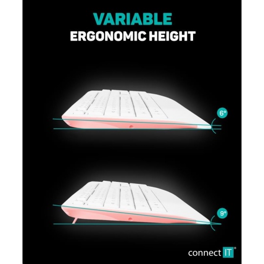 CONNECT IT Combo bezdrátová bílo-růžová klávesnice + myš, CZ + SK layout