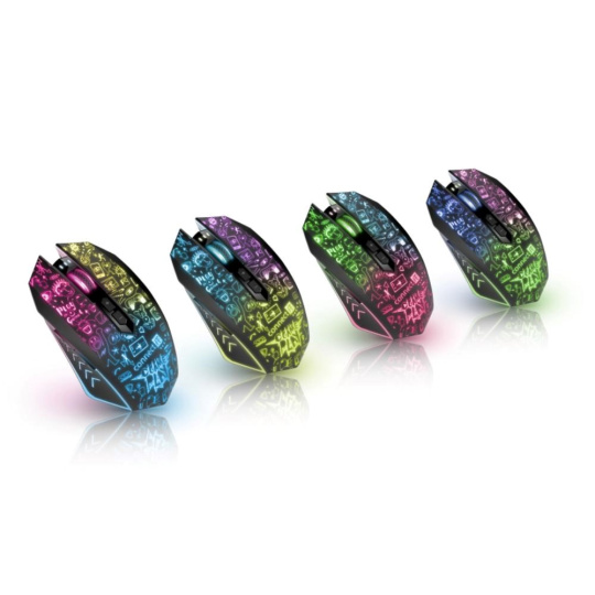 Profesionální bezdrátová gamingová myš DOODLE 2 PRO pro hráče počítačových her s Rainbow podsvícením těla i kolečka.
