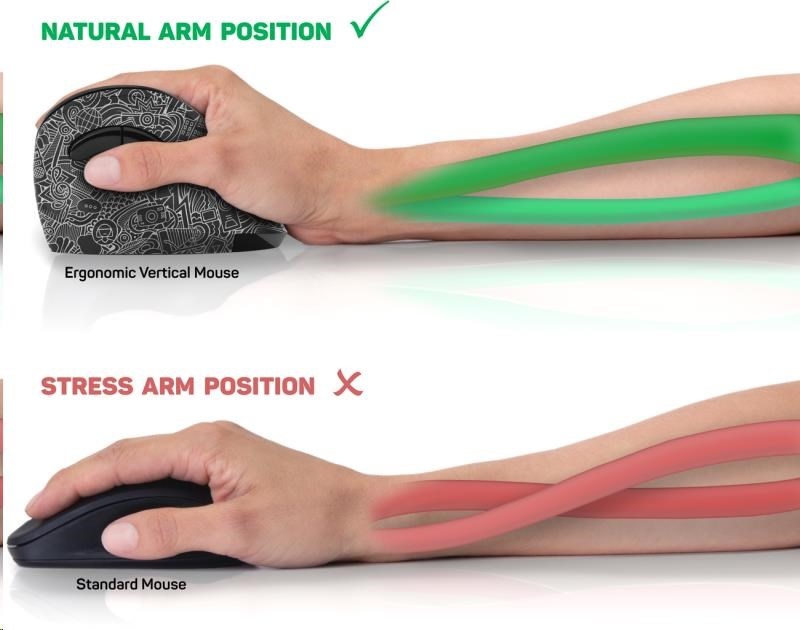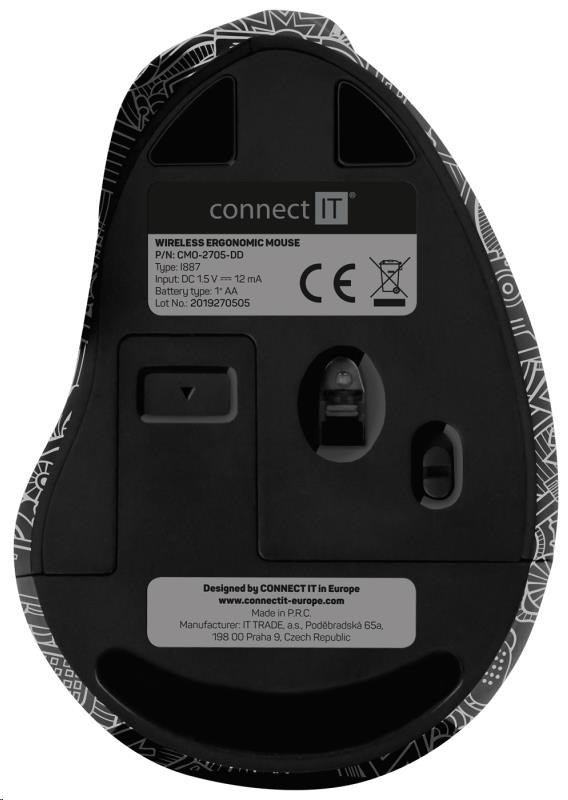 CONNECT IT FOR HEALTH DOODLE ergonomická vertikální myš, (+ 1x AA baterie zdarma), bezdrátová