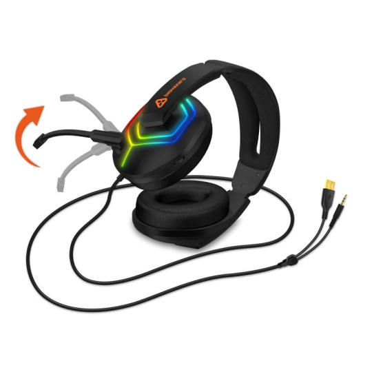 Sluchátka jsou vybavena RGB Rainbow podsvícením, ovládáním hlasitosti, sklápěcím mikrofonem a oblíbenými pozlacenými konektory. V balení najdete i 3.5 mm jack adaptér pro maximální kompatibilitu.
