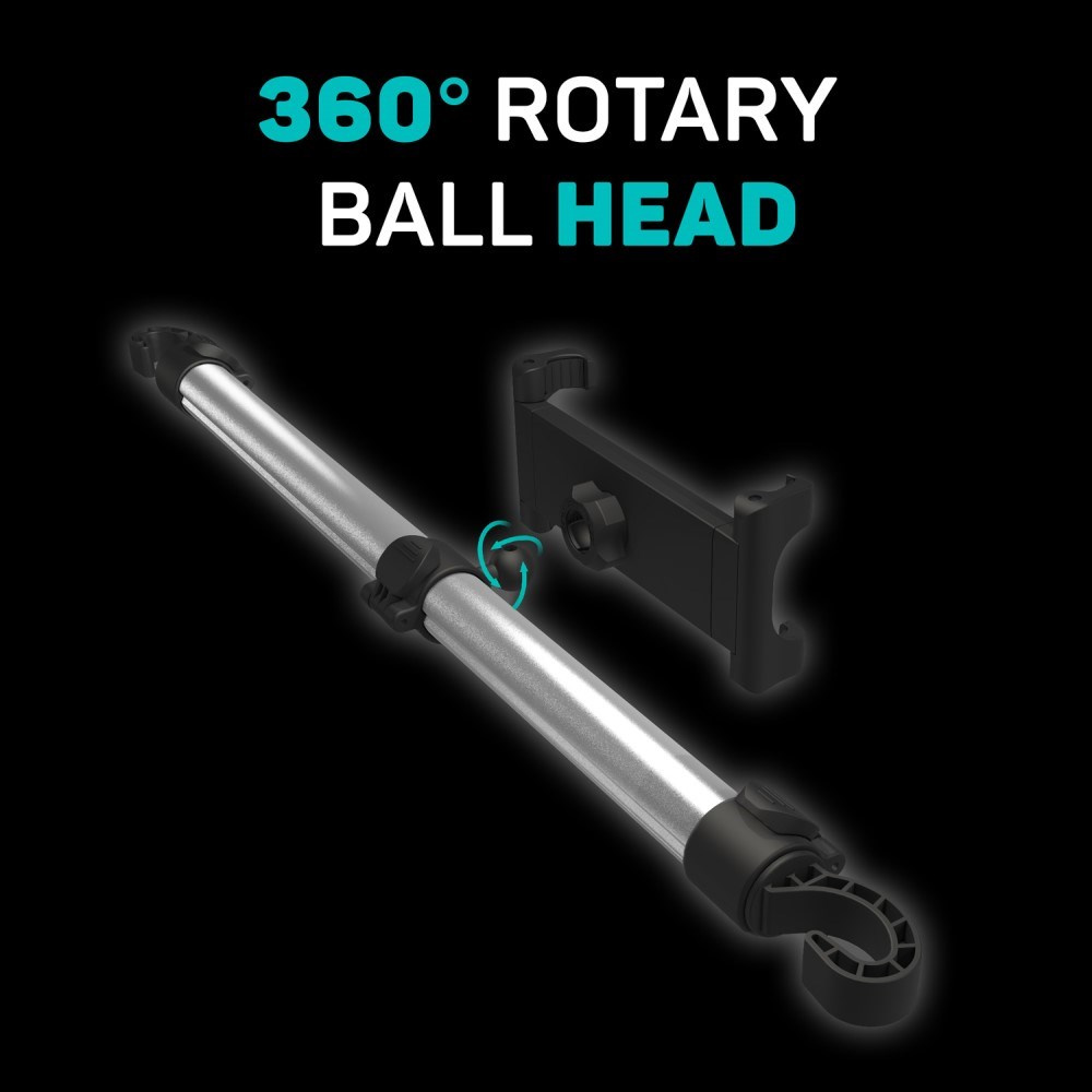 Držák má nastavitelné kleště a silikonové koncovky, takže se nemusíte obávat poškrábání vašeho zařízení během cesty. Kulovitá hlava držáku umožňuje rotaci v rozsahu 360 stupňů. Držák je vyroben z kvalitního hliníku a plastu v elegantním černém barevném provedení.