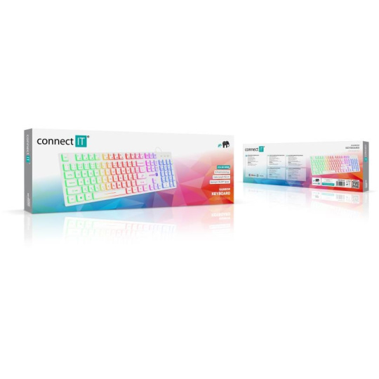 CONNECT IT kancelářská podsvícená klávesnice Chocolate RNBW, CZ + SK verze, bílá