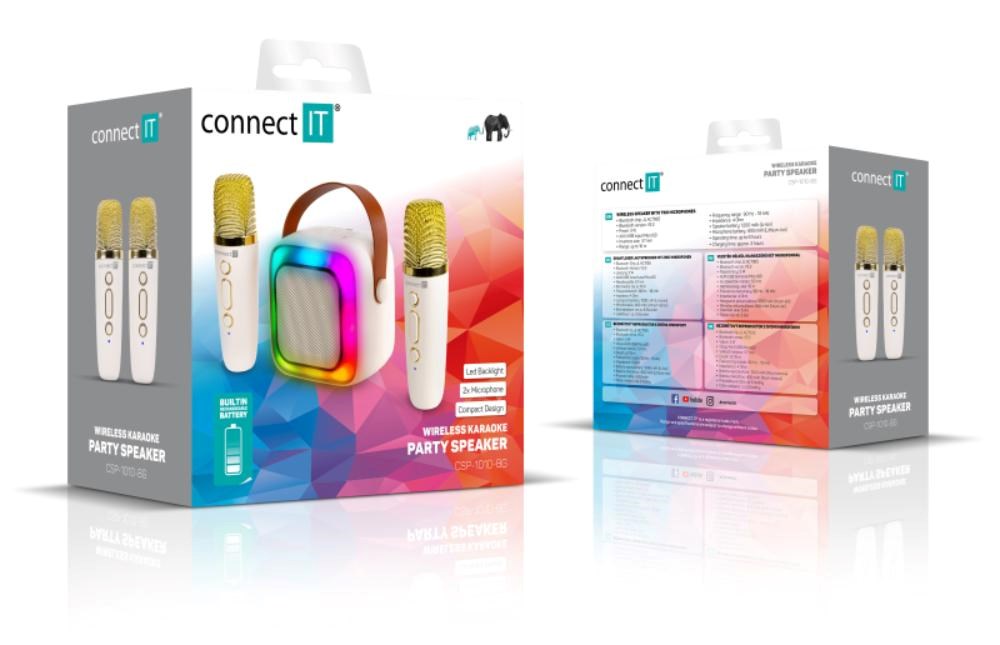 Bezdrátový reproduktor CONNECT IT 2Mic se dvěma mikrofony pro nekonečné množství karaoke zábavy.