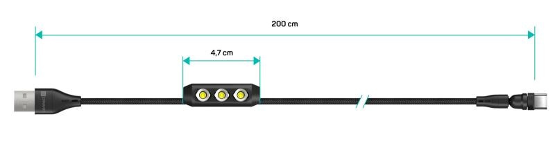 Praktický a univerzální kabel Magnetic PowerLink 3v1 s podporou nabíjení a přenosu dat. Kabel disponuje třemi vyměnitelnými magnetickými konektory (USB-C, Lightning a MicroUSB) s podporou rychlého nabíjení pomocí max. proudového toku 3 A.