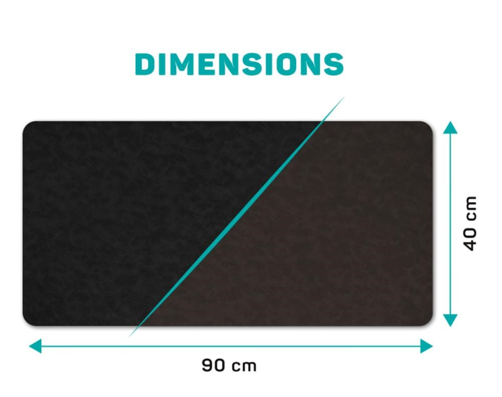 Oboustranná stylová podložka z umělé kůže je vhodná do každé kanceláře či domácí pracovny. Podložka disponuje jemným antistatickým povrchem příjemným na dotek, zajišťující snadný a přesný pohyb myši. Při velikosti plochy 900 × 400 mm vám nikdy nedojde prostor k pohybu. Velkou výhodou je oboustranné dvoubarevné využití. Materiál byl navržen tak, aby odpuzoval vodu a nečistoty.