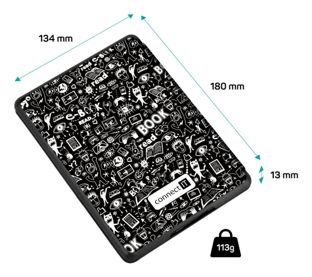 - Přední kryt otočný o 360° umožňuje pohodlné čtení v jedné ruce (stačí otevřít a překlopit)