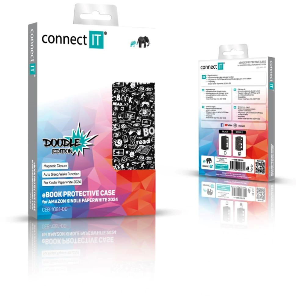 CONNECT IT Pouzdro pro Amazon Kindle Paperwhite 2024, doodle černá