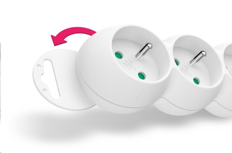 Prodlužovací kabelový přívod na 230V je vybaven hlavním síťovým vypínačem, který při vypnutí zcela odpojí od přívodu elektrické energie všechny zapojené spotřebiče najednou. Extra výbavou je dětská ochrana všech zásuvek – zásuvky jsou přístupné pouze v případě zasunutí obou vidlic najednou, nelze tedy zasunout jednotlivě např. pouze šroubovák nebo pletací jehlici. Díky pootočení zásuvek o 45° je možné používat i objemnější napájecí adaptéry nebo úhlové koncovky. Výsuvné očko v horní části zásuvkového modulu umožňuje zavěšení nebo pevnou instalaci na stěnu (s výhodou využijete např. v dílnách a garážích). Výrobek byl testován a certifikován v evropském testovacím centru a splňuje nejpřísnější bezpečnostní požadavky a nejnovější normy, takže umožňuje zapojení spotřebičů o celkovém příkonu až 2500 W.
