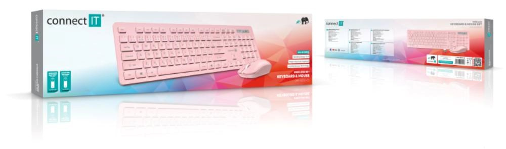 CONNECT IT Set Klávesnice+myš Wireless FashionCombo2, bezdrátová, růžová