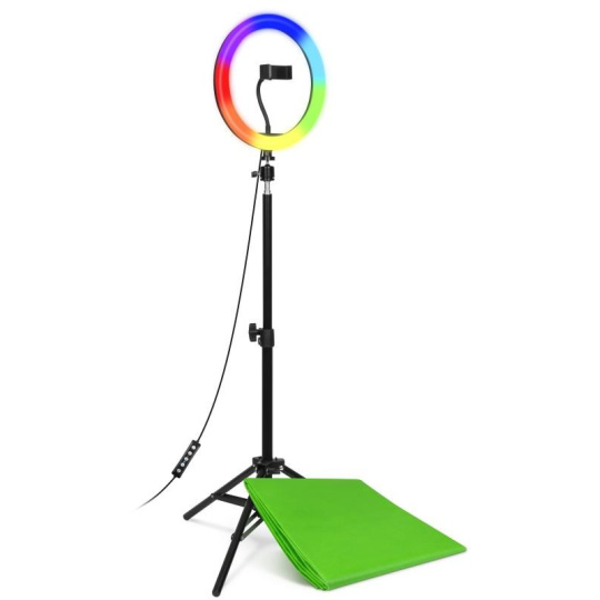 Chcete-li povznést vaše videa a fotky na vyšší úroveň, využijte přiložený green screen, díky kterému vaše tvorba zaujme unikátním pozadím a získá originální vibe. Absolutní svobodu v nastavení požadovaného úhlu garantuje úchyt světla pomocí kulové hlavy. Barevnou teplotu světla je možno nastavit od studené až po teplou ve třech úrovních. Držák mobilního telefonu umístěný na flexibilním husím krku umožňuje pohodlné nastavení do libovolného snímacího úhlu fotografií a videí. Ve výbavě nechybí dálkový ovladač pro vypnutí/zapnutí světla, nastavení jeho intenzity nebo barevné teploty.