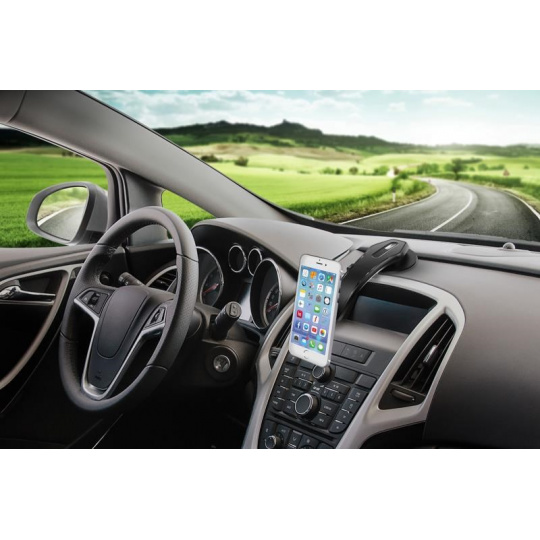 Možnost variability pozice na vhodném místě palubní desky splňuje bezpečnostní podmínky pro umístění mobilního telefonu v automobilu, kdy telefon nebrání řidiči ve výhledu. Velmi jednoduchá instalace pouhým přiložením gelové přísavky na palubní desku a nalepením 3M samolepkou. Na zadní část mobilního telefonu stačí pak už jen nalepit jednu z dodávaných kovových destiček nebo ji vložit do obalu telefonu. Telefon stačí pouze přiblížit a vlivem magnetické síly se sám aretuje na držáku. Držák nabízí totožnou stabilitu ve vertikální i v horizontální poloze.
