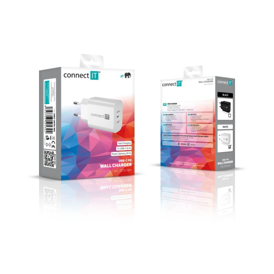 Cestovní USB nabíječka CONNECT IT "Voyager2" určená pro napájení i nabíjení mobilních telefonů, tabletů, power bank, akčních kamer, elektronických čteček knih, MP3 a MP4 přehrávačů, herních konzolí a mnoha dalších přenosných zařízení doma, v kanceláři i na cestách. Technologie Power Delivery (PD) umožňuje rychlonabíjení o výkonu 25 W.
