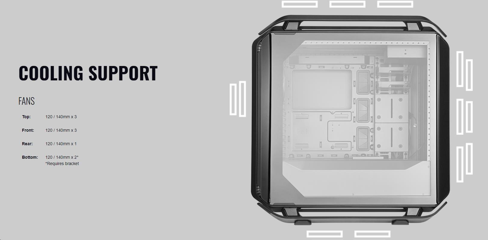 Cooler Master case Cosmos C700P Black, E-ATX, Průhledná bočnice, 3x 140mm Fan, Černá