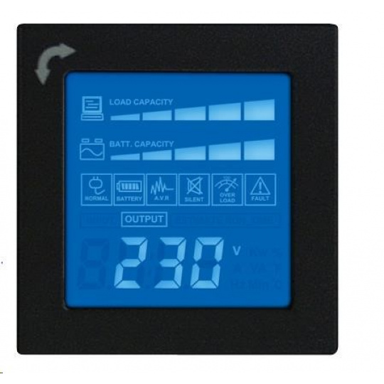Multi-funkční LCD zobrazení Ano - Typ provozu , Stav napájení , Stav baterie , Stav zátěže , Porucha a varování , Další informace , Události a záznamy
