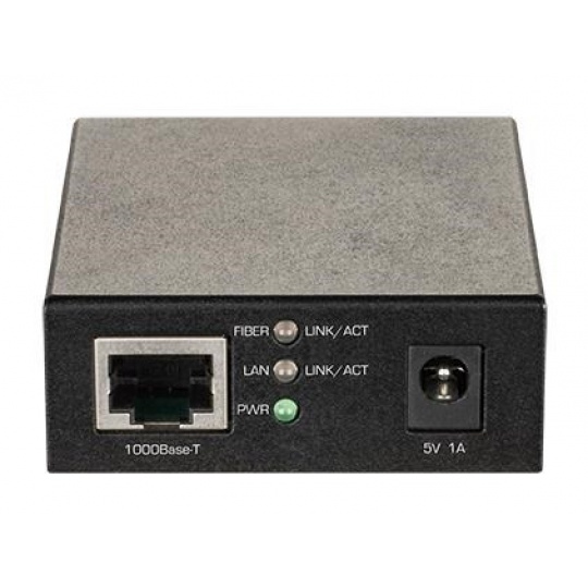 DMC-G01LC/E D-Link DMC-G01LC 10/100/1000 to SFP Media Converter D-Link DMC-G01LC je media konvertor pro převod metalického Ethernet rozhraní na optická vlákna, což umožňuje rychlé spojení na velké vzdálenosti. Metalické rozhraní 10/100/1000Base-T RJ-45 automaticky vyjednává rychlosti 10Mb/s, 100Mb/s nebo 1000Mb/s dle typu připojeného zařízení, podporuje automatické přepínání MDI/MIDX, half/ful duplex provoz při 10/100 Mb/s rychlostech a full duplex provoz při 1000Mb/s. Optická strana konvertoru DMC-G01LC využívá 100/1000 SFP port pro maximální flexibilitu. Pomocí příslušného SFP transceiveru (zakoupeného samostatně) může podporovat vícevidové (multi-mode) nebo jednovidové (single-mode) vlákno, různé vlnové délky a rychlosti buď 100 Mb/s nebo 1000 Mb/s. DMC-G01LC podporuje standardní technologie, jako např. 802.3u. 802.3x a 802.3ab. Jedná se o zařízení typu plug&play, bez nutnosti nastavování. Instalace je velmi snadná – položte konvertor na poličku, připojte externí napájecí 5V DC adaptér (součástí dodávky), vložte SFP transceiver, připojte kabely a můžete začít konverzi. Specifikace: • Stand-alone Gigabit Media Converter • 10/100/100M RJ-45 port • 100/1000M SFP port • IEEE 802.3u • IEEE 802.3x • IEEE 802.3ab • Auto-Negotiation for each port • Full-Duplex operation at 1000 Mbps • Half/Full-Duplex operation at 10/100 Mbps • Back pressure at Half-Duplex operation • Auto MDI/MDIX • Wire speed reception and transmission • Supports Jumbo frames up to 9216 bytes at 1000 Mbps • LFPT - Link fault pass-through technology • Maximum Forwarding Rate: 14880 pps @ 10 Mbps, 148800 pps @ 100 Mbps, 1488000 pps @ 1000 Mbps • Forwarding mode Cut-Through • Packet Buffer Memory 256 Kbits • Switching Capacity 2 Gbps • External Power Adapter 5V/1A included • Power Consumption (Max.) at 240 V AC: 0,918 W • Power Consumption (Standby) at 240 V AC: 2,391 W • Heat Dissipation: 11,81 BTU/h (Max) • Dimensions (L x W x H): 75x 60 x 23 mm) • MTBF: 1,723,322 hours • Operation Temperature: 0°C to 50 °C • Storage Temperature: -20°C to 70 °C • Operating Humidity: 0% to 90% • Storage Humidity: 5% to 90% • EMI certifications: CE class A, FCC class A, VCCI class A, BSMI class A • Safety certifications: LVD, UL/cUL, CB Volitelné SFP transceivery* • DEM-211 - 100BASE-FX Multimode Fiber SFP Transceiver, 1310nm • DEM-310GT - 1000BASE-LX Singlemode Fiber SFP Transceiver, 1310nm • DEM-311GT - 1000BASE-SX Multimode Fiber SFP Transceiver, 850nm • DGS-712 - 1000BASE-T Copper SFP Transceiver *Tyto transceivery D-Link byly testovány s tímto konvertorem DMC-G01LC pro interoperabilitu. Kompatibilita s jinými transceivery jiných výrobců nebyla testována a není zaručena. Použití transceiverů třetích stran je na vlastní nebezpečí..