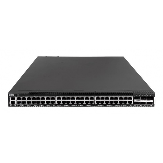 D-Link DXS-3610-54T/SI je výkonný L3 stohovatelný 10G/40G/100G spravovatelný přepínač osazený 48 porty 1G/10G RJ-45 a 6 porty 40G/100G QSFP+/QSFP28 pro uplink nebo HW stacking. Je vhodný pro podnikové (Enterprise) a areálové (Campus) sítě, poskytovatele internetu (ISP) a datová centra (Top of Rack, ToR). Flexibilní a otevřená architektura přepínače s podporou OpenFlow 1.3 umožnuje nasazení v SDN sítích. V základní verzi (Standard Image, SI) nabízí switch pokročilou sadu L2 funkcí, L3 statický routing, dynamický routing RIP/RIPng, OSPFv2/v3 a VRRPv2/v3. Pomocí volitelné Enhanced licence DXS-3610-54T-SE-LIC lze rozšířit funkcionalitu o L3 routing multicastu (PIM), MPLS, L2/L3 VPN, L3 routing BGP, IS-IS a VRF Lite. Switch DXS-3610 nabízí robustní a univerzální možnosti stohování pro jednodušší správu, redundanci a vysokou propustnost sítě. Pomocí 2, 4 nebo 6 portů 40G/100G QSFP28 lze do HW stohu zapojit až 12 přepínačů řady DXS-3610, s celkovou šířkou pásma stohování až 1200 Gb/s (1,2 Tb/s). Vysokou spolehlivost sítě a efektivní chlazení zajišťují 1+1 modulární zdroje a modulární ventilátory (N+1), s prouděním vzduchu z přední strany switche do zadní (front-to-back)..
