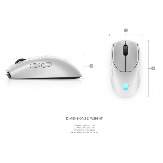 DELL Alienware Tri-Mode Wireless Gaming Mouse AW720M (Lunar Light)