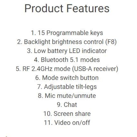 Rozhraní klávesnice:Bezdrátová; Lokalizace klávesnice:CZ/SK; Výbava klávesnice:Podsvícené klávesy.