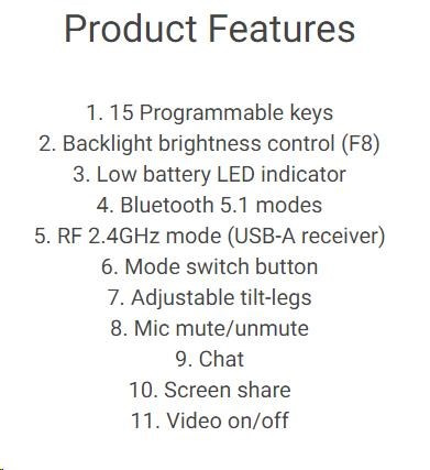 Rozhraní klávesnice:Bezdrátová; Lokalizace klávesnice:CZ/SK; Výbava klávesnice:Podsvícené klávesy.