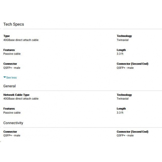 Owerview  The Passive Direct attach copper cables provide highly reliable communication links with superior bit error rate (BER) performance. These copper cables are designed as a cost-effective and lower power alternative to optical cable assemblies for short length interconnects between active network equipment.      Hot Pluggable QSFP+ - QSFP+ form factor     Direct Attached Copper Cables     Low power consumption and low crosstalk  https://www.dell.com/en-us/work/shop/dell-networking-cable-qsfp-to-qsfp-40gbe-passive-copper-direct-attach-cable-1-meter-kit/apd/470-aavr/networking  Type: 40GBase direct attach cable  Technology: Twinaxial  Features: Passive cable Length: 3.3 ft  Connector: QSFP+ - male Connector (Second End): QSFP+ - male   Compatibility   This product is compatible with the following systems:      Dell EMC Networking N2200-ON     Dell EMC PowerSwitch Z9264F-ON     Dell EMC PowerSwitch Z9332F-ON     Dell EMC PowerSwitch Z9432F-ON     Dell Networking N3132PX-ON     Dell Networking S4112-ON     Dell Networking S4128     Dell Networking S4148     Dell Networking S4148U     Dell Networking S5212F-ON     Dell Networking S5224F-ON     OptiPlex GX260 MT     PowerEdge C4140     PowerEdge C6420     PowerEdge FC640     PowerEdge M640     PowerEdge M640 VRTX     PowerEdge R240     PowerEdge R340     PowerEdge R440     PowerEdge R540     PowerEdge R640     PowerEdge R6415     PowerEdge R740     PowerEdge R740XD     PowerEdge R740xd2     PowerEdge R7415     PowerEdge R7425     PowerEdge R7515     PowerEdge R7525     PowerEdge R840     PowerEdge R940     PowerEdge R940xa     PowerEdge T140     PowerEdge T340     PowerEdge T440     PowerEdge T640     PowerEdge XR2     PowerVault NX440.