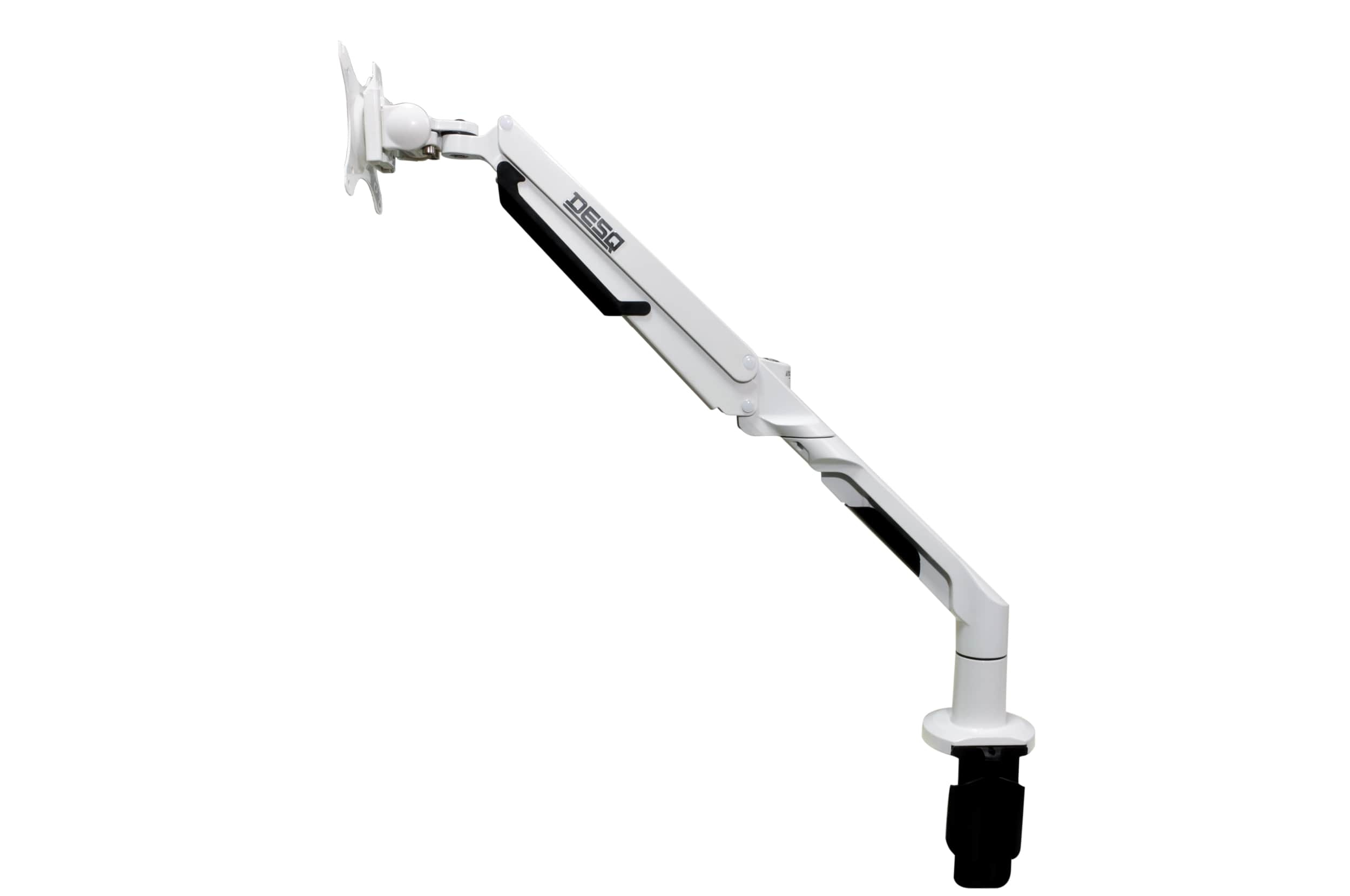 Vylepšete svou domácí kancelář nebo pracovní prostor s DESQ monitorovým ramenem s plynovou pružinou, které umožňuje snadné nastavení výšky, vzdálenosti a úhlu monitoru. Díky extra dlouhému dosahu 62 cm je ideální pro větší pracovní plochy nebo pro uživatele, kteří potřebují flexibilitu v umístění svého monitoru. Bílá barva. ? Plynová pružina pro snadné a přesné nastavení výšky jedním dotykem ? Kompatibilní s monitory od 17” do 36” (VESA 75x75 mm a 100x100 mm) ? Nosnost od 3 kg do 12 kg ? Montáž pomocí C-Clamp + Desk-thru pro flexibilní a bezpečné uchycení ? Rychloupínací VESA deska pro jednoduchou a rychlou instalaci monitoru ? Integrovaný systém pro správu kabelů udržuje váš pracovní prostor přehledný ? Možnost snadné rotace mezi režimem na výšku a na šířku S DESQ monitorovým ramenem snadno nastavíte výšku, vzdálenost a úhel obrazovky tak, aby byla v ergonomicky ideální poloze, čímž se snižuje namáhání krku, zad a očí. Zvednutím monitoru z pracovní plochy uvolníte cenné místo na stole a vytvoříte efektivnější pracovní prostředí..