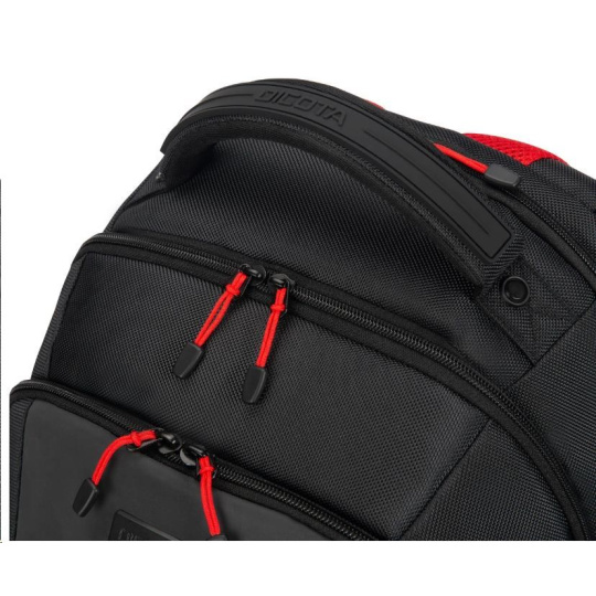 Skrytá kapsa na zadní straně slouží jako bezpečnostní kapsa a poutko na kolečkách