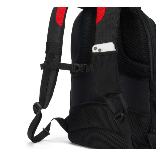 Polstrované ramenní popruhy s hrudním popruhem a elastickou kapsou na smartphone