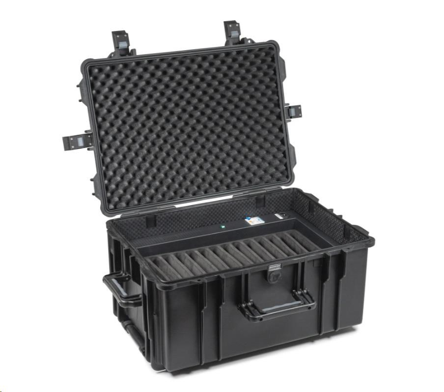 Nabíjecí vozík zajišťuje, že jsou vaše tablety vždy připravené k použití a nabité, když je potřebujete. Bezpečné úložiště a technologie nabíjení šetřící zdroje pro použití v různých pracovních a školních prostředích. Nabíječka dokáže nabíjet až 14 tabletů současně ze standardní elektrické zásuvky.