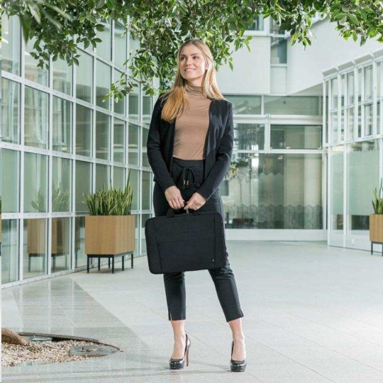 The Eco Slim Case BASE is a light, slim laptop case. Devices between 15 and 15.6" are well protected in the padded notebook compartment. The case is comfortable to carry thanks to its padded carrying handle and adjustable shoulder strap. The extra compartment on the back is especially handy for easily storing documents. Your smartphone or other smaller items like cables, pens or chargers can be stored in the convenient front pocket, so they are always to hand. The Eco Slim Case BASE is therefore perfect for you if you are always on the go and want to support the recycling of PET bottles with an eco-friendly case.
