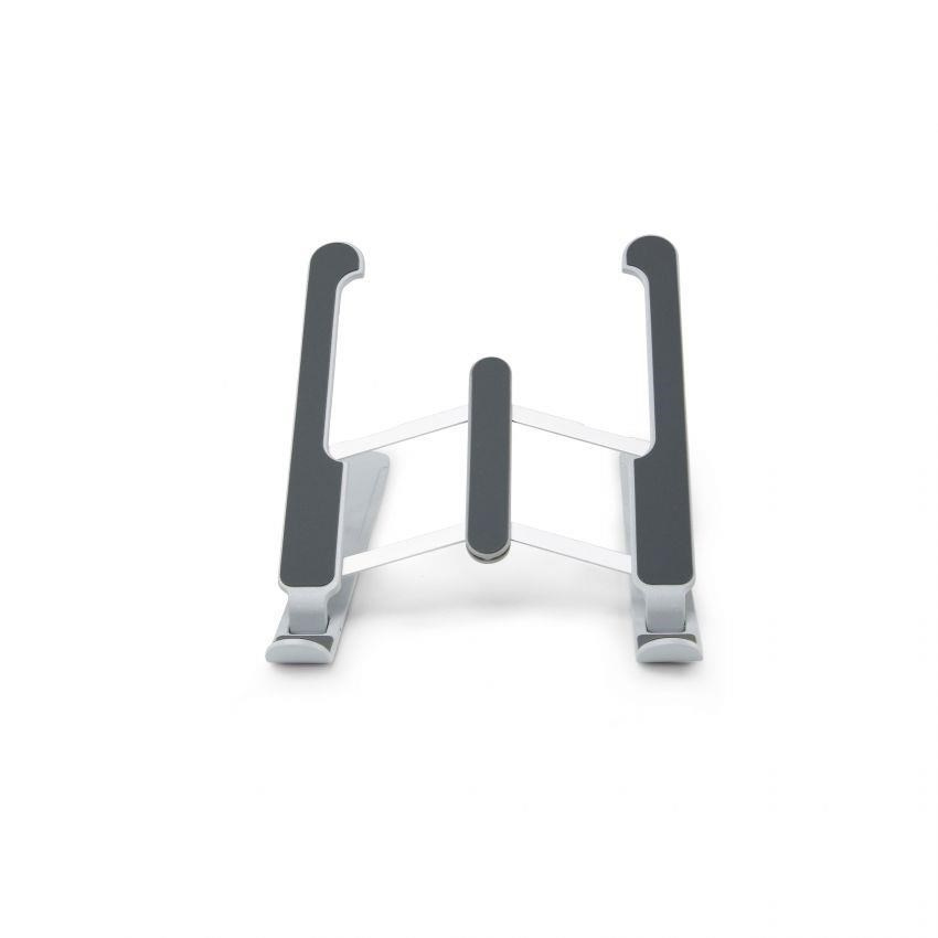 Portable Stand for Laptop and Tablet The ergonomic design lets you work comfortably from anywhere Adjust your device to the best position. The stand has seven height levels. This helps to correct posture to allow you to work throughout the entire day without any problems. Specifications Art.no.: D31889 EAN: 7640186416559 Weight: 0.341 kg Material: Aluminium Alloy Warranty: 24 months Dimension: 265 x 160 x 60 mm Max. Device dimensions: 0 x 0 x 0 mm Characteristics • Universally compatible with laptops and tablets • 7 adjustable heights • Work ergonomically from anywhere • Made from high-quality aluminium • The open part at the back prevents over-heating • Silicone pads prevent scratching and slipping • Compact and light.