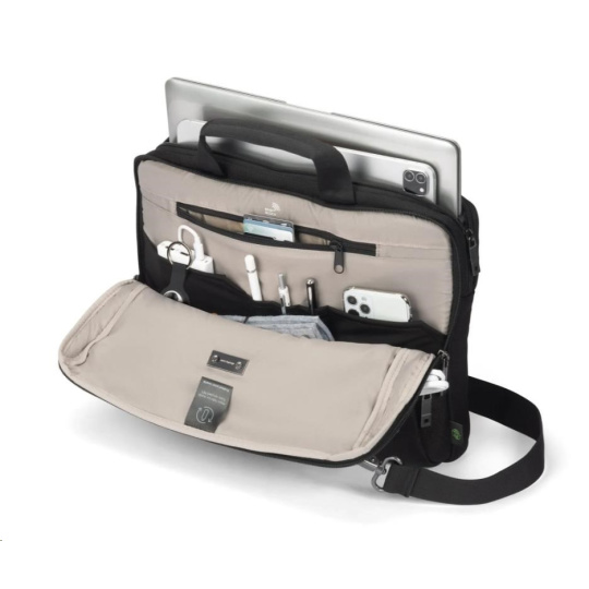Lehký, bezpečný a navržený pro snadnou mobilitu, Slim Case FIVE chrání vaše nezbytnosti bez toho, aby byl objemný. Uzamykatelná přihrádka na notebook s ochranou DCT Notebook Protection zajišťuje maximální bezpečnost, zatímco integrovaná kapsa bezpečně udrží tablety do velikosti až 12,9". Přední přihrádka se strukturovanými kapsami slouží k uspořádání příslušenství a samostatná zadní přihrádka poskytuje vyhrazený prostor pro dokumenty. Je vyroben z 16,5" recyklovaných PET lahví, takže je udržitelnou a praktickou volbou pro moderní profesionály.