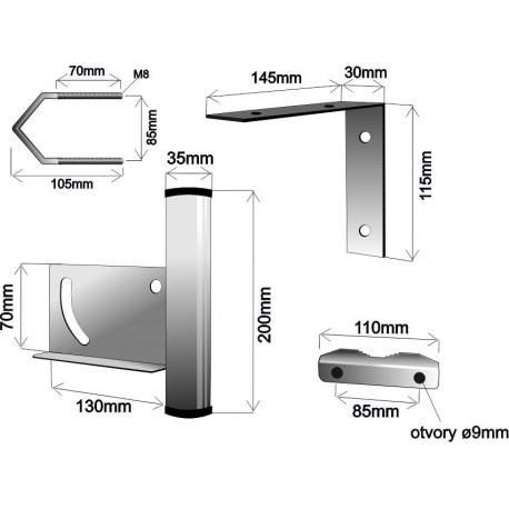 | Baleno: | protikus- tl. materiálu 3mm, 1x hákový šroub, 2x podložka, 2x matkaL profil pro uchycení na zeď + 2xšroubek, 2x matka, 2x podložka |