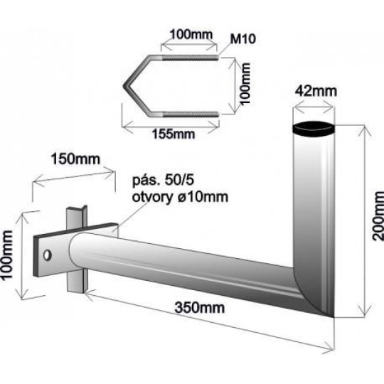 Držák antény na stožár s vinklem, galvanický zinek, délka 35cm